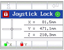 Opens Joystick Lock menu. The color of the lock indicated the status of the joystick Green: both axes are un-locked | |