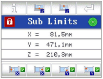 - To set a sub-limit, move the detector to the desired position, press the corresponding softkey. When a green checkbox appears on the right-side of the icon, the sub-limit is set.