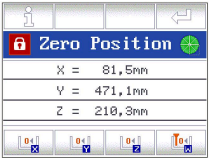 In the water phantom main display, press the soft key to opeSn the Zero Position menu: