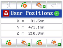 In the water phantom main display, press the softkey to open the User Positions menu:
