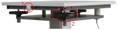 - Place the spirit level on the platform of the lift table and turn the tilt adjust hand wheels (2) to adjust the phantoms to a perfect horizontal position.