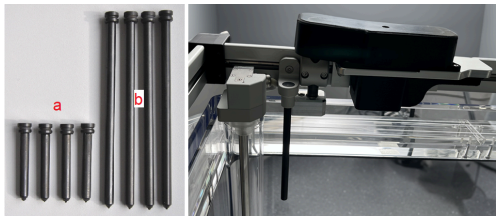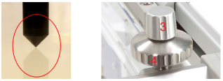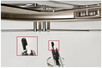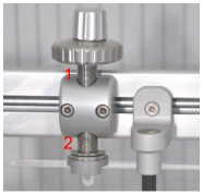 - Look at the alignment cap. If the chamber is not exactly at the water surface, use the manual leveling pin to adjust the mechanical frame vertically so that the lines on the cap again form a precise cross.