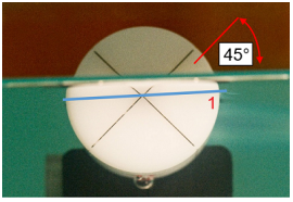 To check whether the chamber is really at the water surface, turn the alignment cap so that the crossline on the front of the cap are at 45° towards the water surface. Look at the cap from below the water surface. The exact water surface position (1) is reached if the lines form a precise cross (see the figure below).