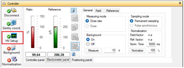 - To turn on the high voltage, click the HV Setup button in the Controller panel of myQA Accept SW: