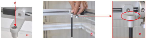 - Insert the detector holder into the counterpart of the scan mechanic (top side of slider at X-axis). Fasten the screw when the holder is in the right position, indicated by a noticeable “snapping”.