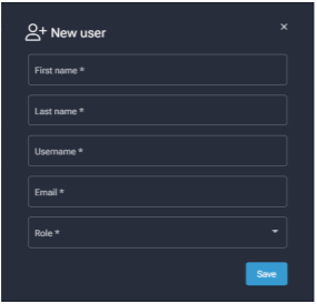 - In the New user dialog, enter the necessary information. The username and email must be unique.