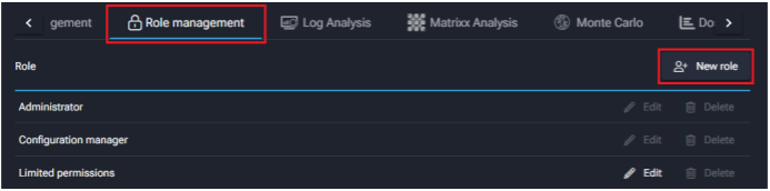 The SW comes with two default user roles – Administrator and Configuration manager.