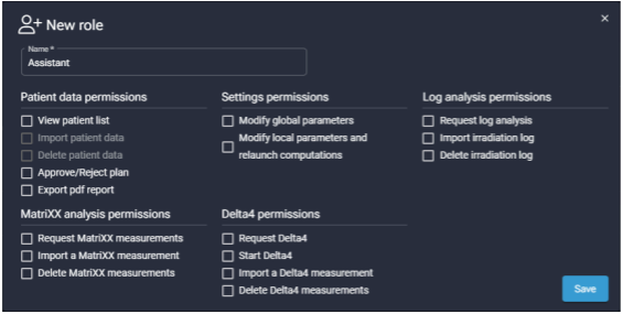 The Configuration manager role can only be used to edit parameters for beam models, HU curves, scanners, and select the PDF report information (see Section 3.4).