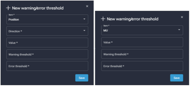 Warning error threshold dialog(s); Direction field is added when Position is selected