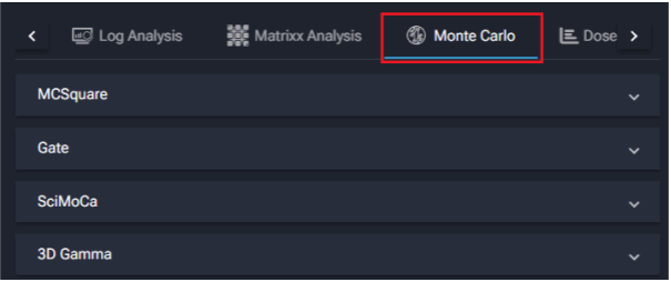 Note: Depending of the configuration, MCSquare, SciMoCa, or Gate might not be visible.