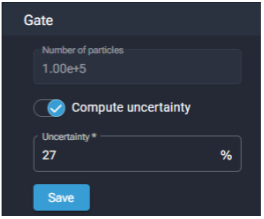 Select one of the two parameters (Number of particles or Compute uncertainty) and enter the necessary information. Click Save.