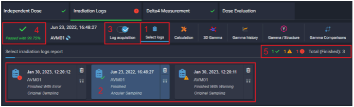 - Once imported, the user can access the logs via the Select logs tab (2). Each log (3) is displayed with the following information: