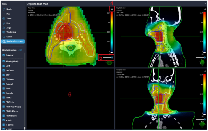 Zoom | Right-click on a dose map and move the mouse left or right to zoom in or out. |