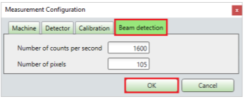 In the Beam detection tab, keep the default (factory setting) parameter values.