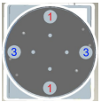 By default, the GS+ is delivered with single-layer tape applied in four positions on the bottom of the base. Due to the curvature of the Varian TrueBeam LINAC cover panels, it is required to use an additional layer of adhesive tape in the two middle positions (3) as shown to the right.