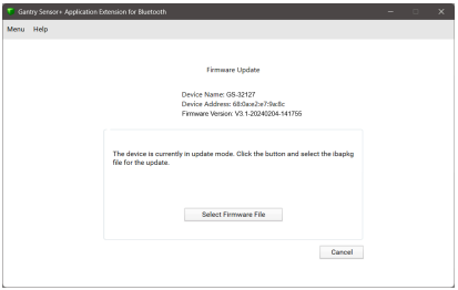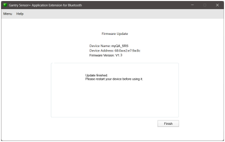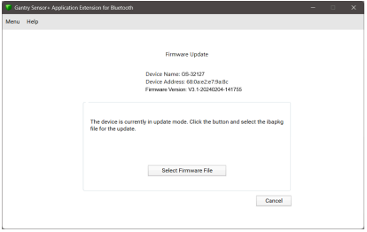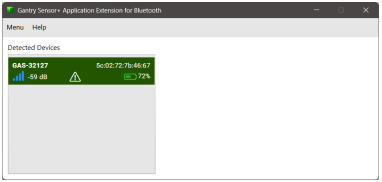 Double-click the GantrySensorPlusApplicationExtensionForBluetooth.exe to open the Gantry Sensor + Application Extension for Bluetooth (GS+ Application).