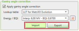 Note: The Lookup Tables provided or created in the myQA SW are valid for all rotation angles of the treatment table.