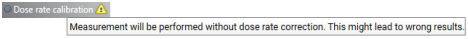 calibration button (f) to create a new one following the procedure described in Section 4.3.2.3.If the Apply dose rate calibration box is not selected, a warning tooltip appears next to the Apply dose